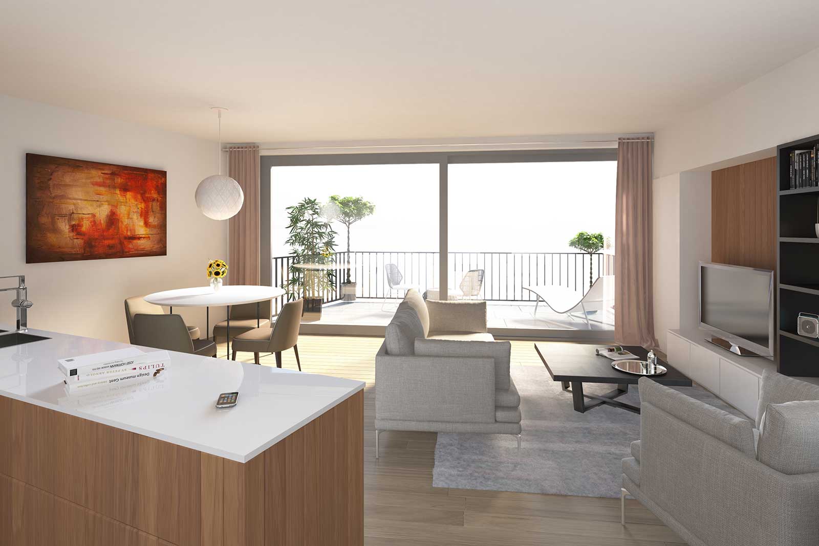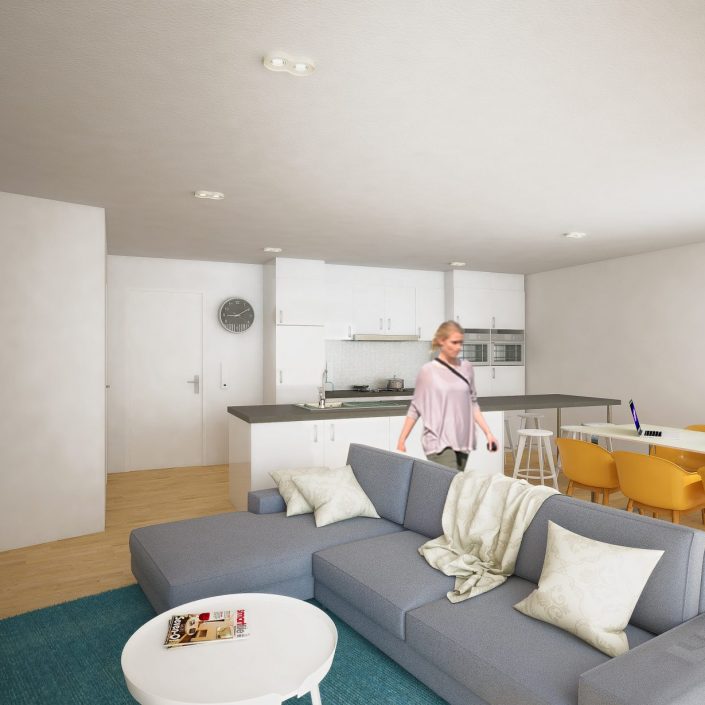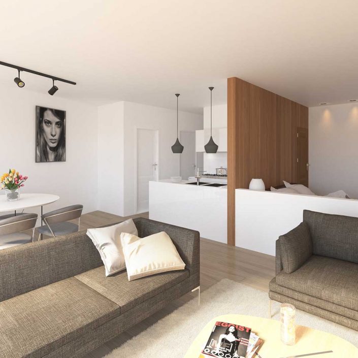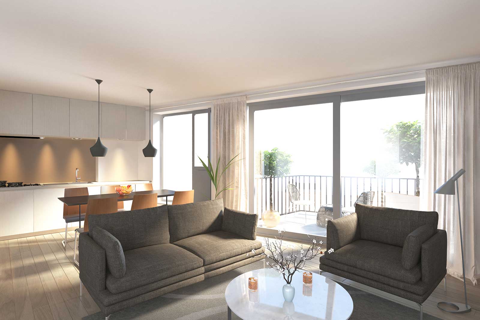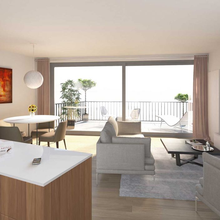 Bouwstress hoeft u niet te hebben. Uw appartement wordt instapklaar geleverd en is uitgerust met alle modern comfort. Een knus maar functioneel ingericht optrekje wordt uw nieuwe thuis. En kijk hoe het gevelbrede terras volop licht naar binnen laat stromen.