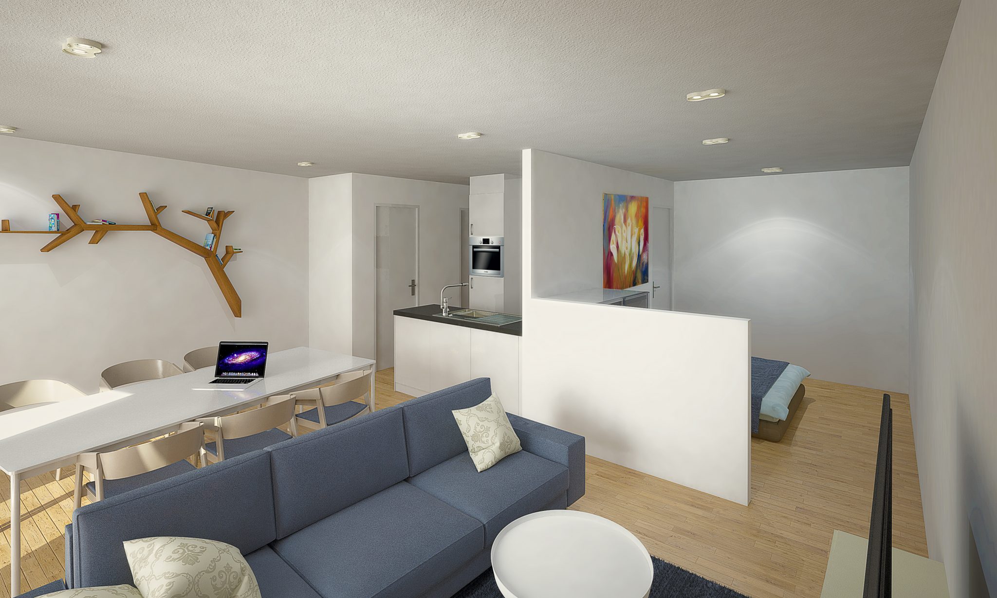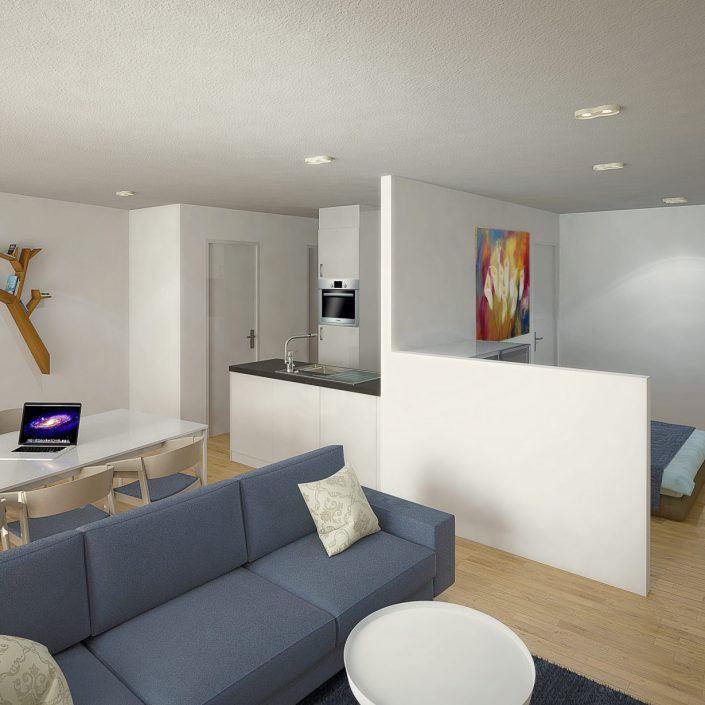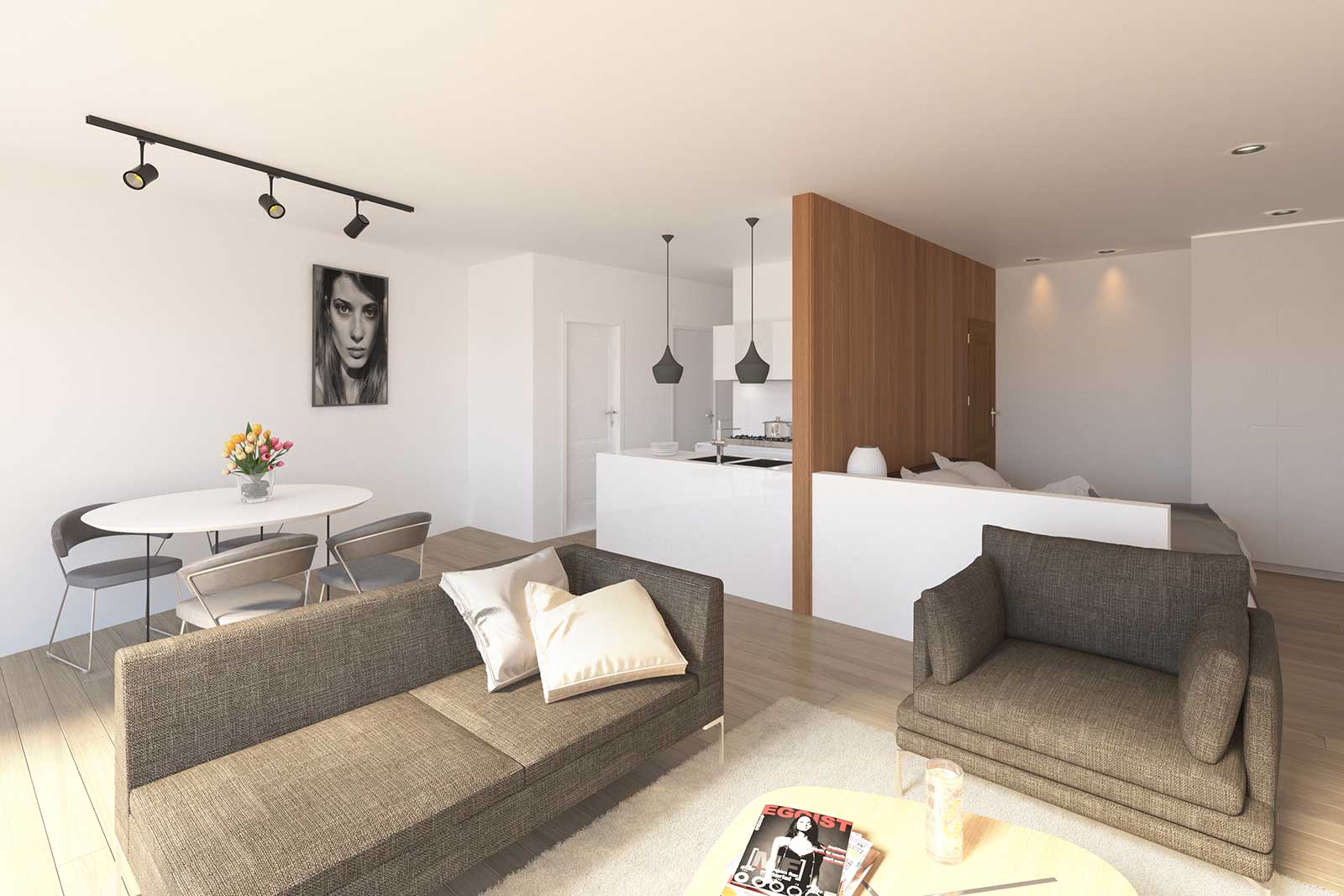 Bouwstress hoeft u niet te hebben. Uw appartement wordt instapklaar geleverd en is uitgerust met alle modern comfort. Een knus maar functioneel ingericht optrekje wordt uw nieuwe thuis. En kijk hoe het gevelbrede terras volop licht naar binnen laat stromen.